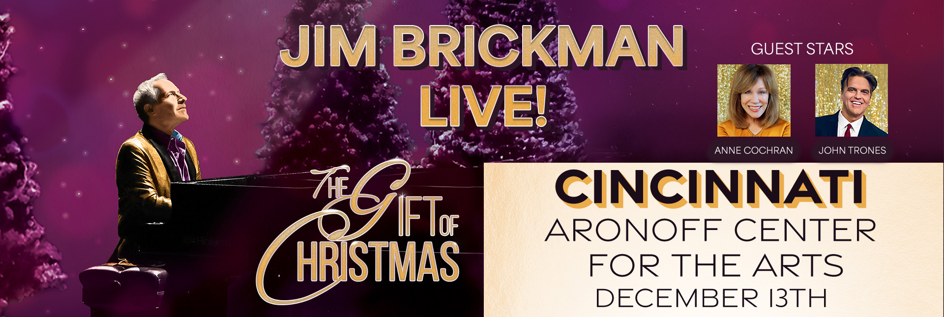 Celebrate The Gift of Christmas with Jim Brickman & special guests Anne Cochran & John Trones, for the most captivating Christmas concert experience of the season.