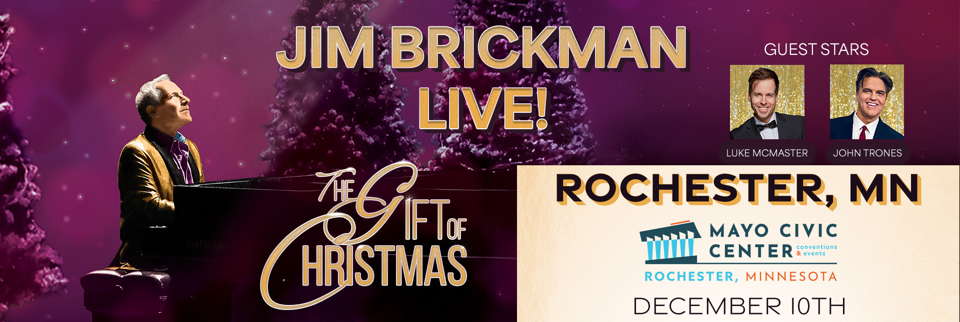Celebrate The Gift of Christmas with Jim Brickman & special guests Luke McMaster & John Trones, for the most captivating Christmas concert experience of the season.