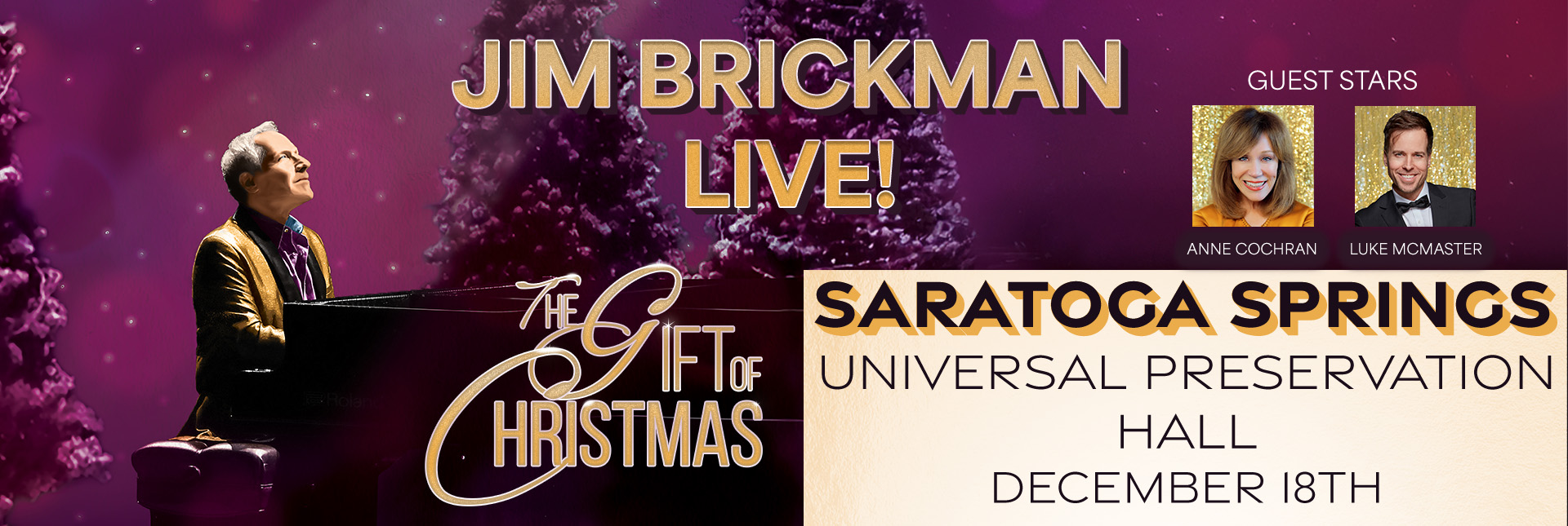 Celebrate The Gift of Christmas with Jim Brickman & special guests Anne Cochran & Luke McMaster, for the most captivating Christmas concert experience of the season.
